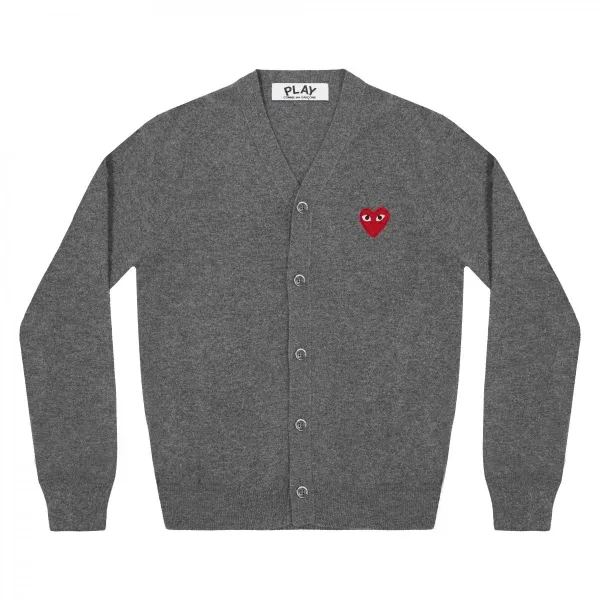 PLAY MENS CARDIGAN RED EMBLEM GREY