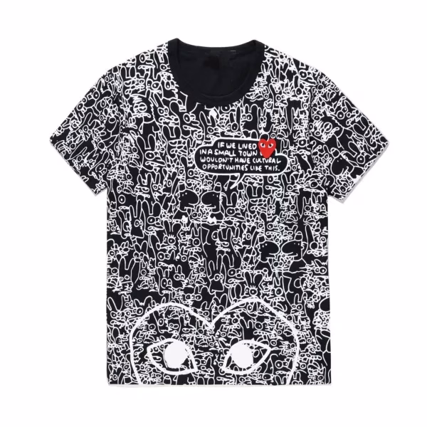 Comme des Garcons x Matt Groening T Shirt is a defiant team up between avante garde fashion and goofy Matt Groening. The T-shirt is crafted in top quality cotton, with a distinctive graphic design that reveals the recognizable cartoonish art of Groening which makes it a must-have item among the admirers of the modern and trendy street styles as well as the collectable fashion apparel.