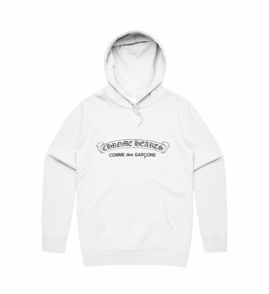 The Comme Des Garcons x Chrome Hearts Hoodie (White) is the usage of two giant brands into the fashion world. This hoodie is crafted using high-end materials and it is a blend of the avant-garde spirit of Comme Des Garcon and street-luxury spirit of Chrome Hearts.