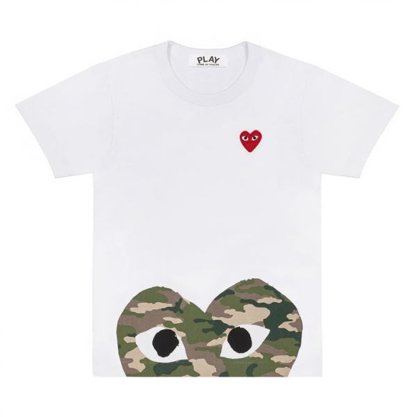 PLAY WHITE T-SHIRT WITH CAMO PRINTED HALF HEART