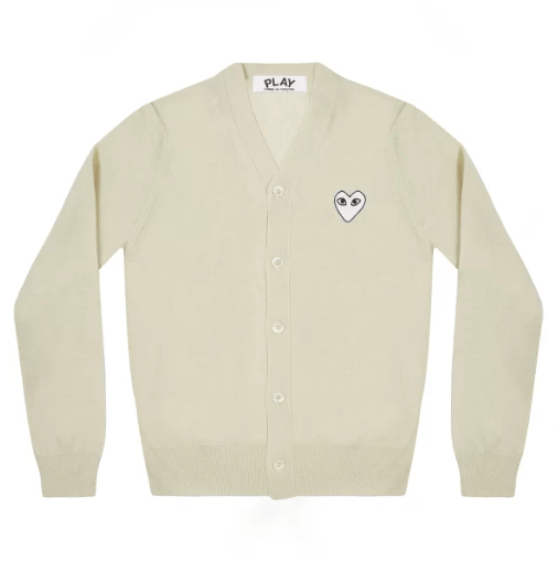 CDG MENS CARDIGAN WHITE HEART NATURAL SERIES OFF WHITE
